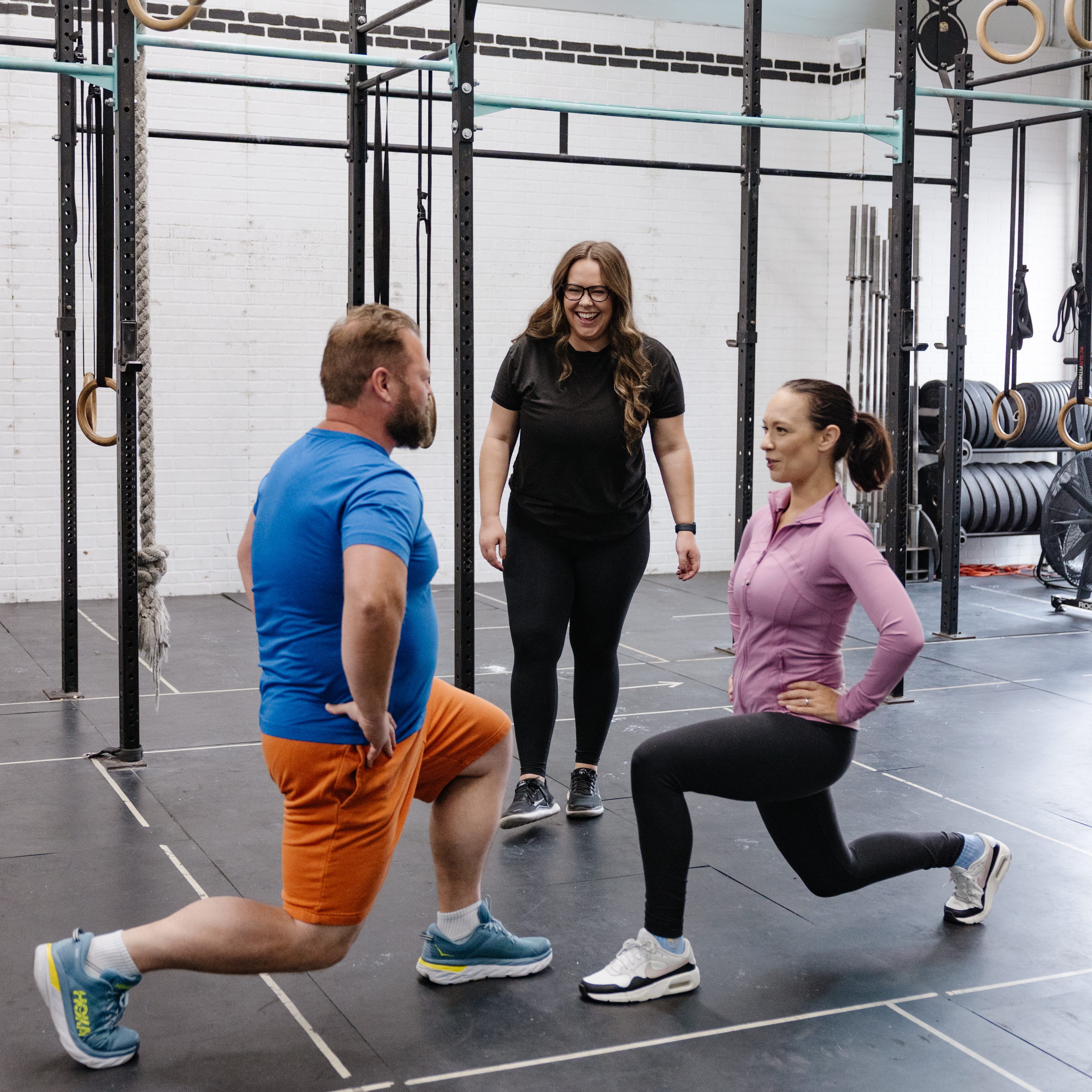 Train alongside a friend or small group in a supportive, motivating environment! These semi-private sessions offer the perfect balance of personalized coaching and shared energy so everyone gets individual attention while working toward their own goals. Each workout focuses on functional movement, strength, and mobility to help you move better, feel stronger, and stay consistent with the added fun and accountability of training together.
